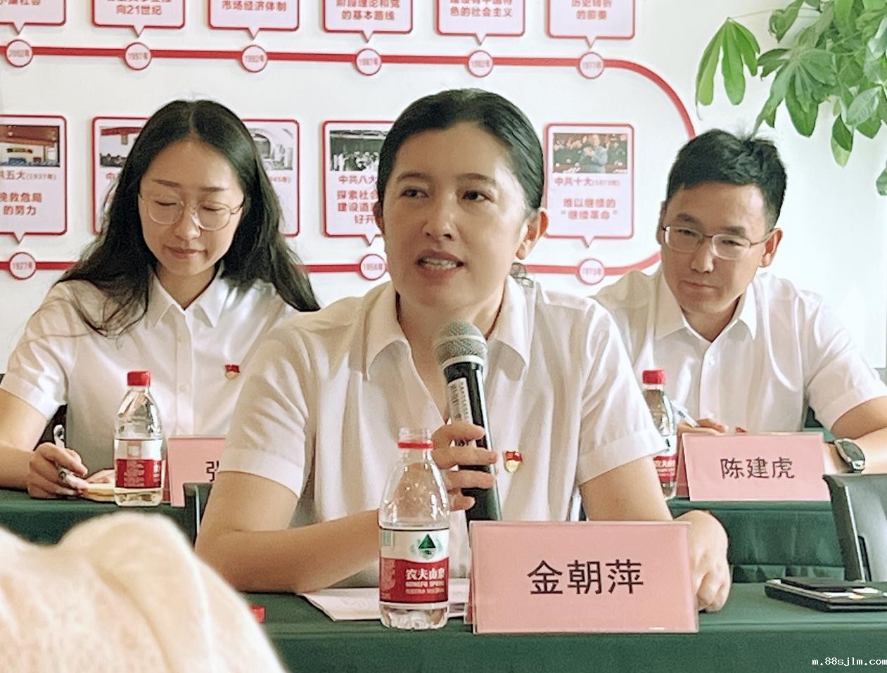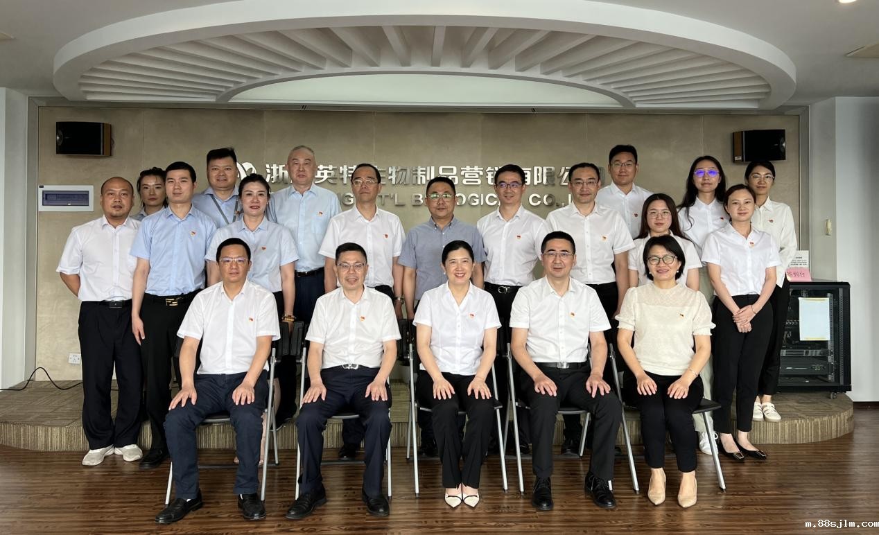 7月4日下午,省国贸集团党委委员、副总经理金朝萍一行来88sjlm下属英特生物开展主题教育专题党课宣讲。国贸集团总部第六支部全体党员,88sjlm党委副书记、工会主席杨永军等领导及党群工作部、英特生物相关人员聆听宣讲。